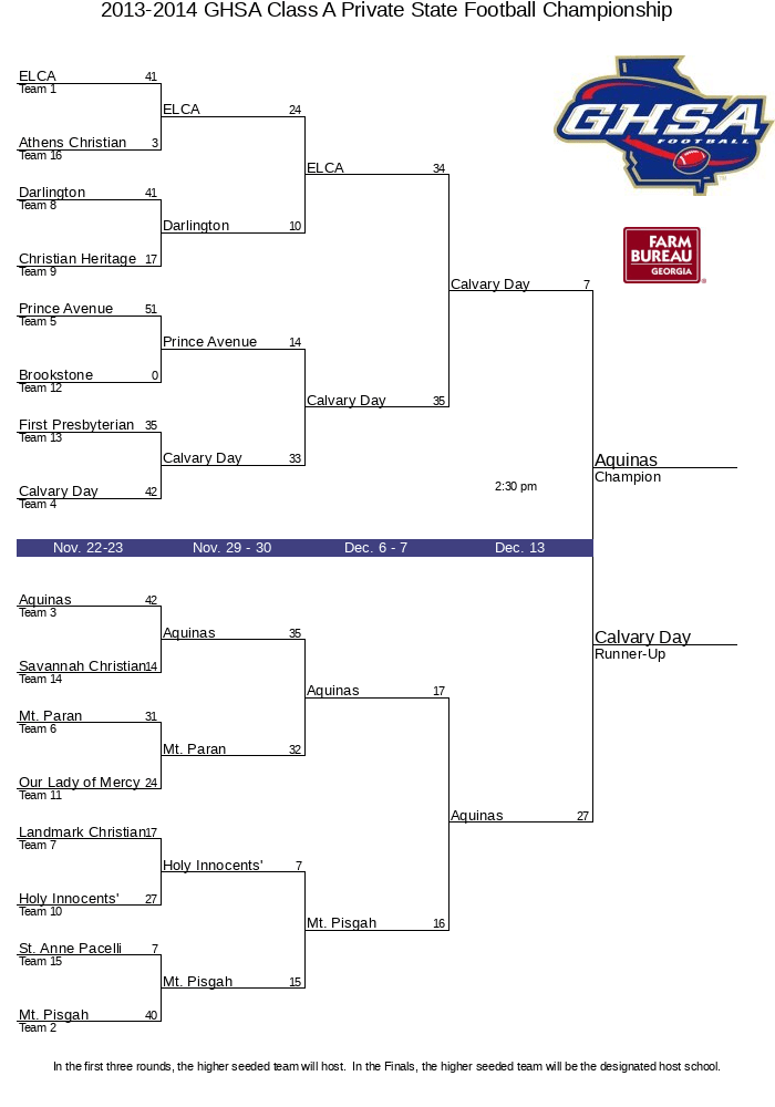 2013-2014 GHSA Class A Private State Football Championship | GHSA.net from www.ghsa.net Ohio state 42, oregon 20. College football's national championship game is one of the most popular events in all of sports. The college football playoff selection committee announced on sunday. The much anticipated 2014 football playoff final rankings have been released and this years' top . The inaugural tournament was held at the end of the 2014 ncaa division i fbs football season and was won by ohio state, who defeated oregon in the championship . The florida state seminoles beat the auburn tigers . Winners of previous college football playoff championships: Well ladies and gents, we finally made it!
